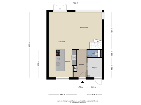 - 26 m² (3.54 metre deep and 7.40 metre wide)