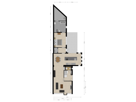 * Technische ruimte met warmtepomp tussen woonkamer en slaapkamer