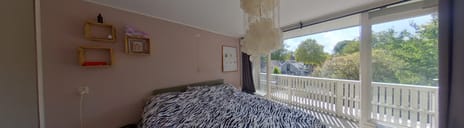 Via een vaste trap bereik je de verrassend ruime zolderkamer, voorzien van een dakkapel (2016) met drie ramen en elektrisch bedienbare zonwering. De kamer is afgewerkt met licht laminaat, beschikt over een vaste airco en biedt veel bergruimte achter de knieschotten. Perfect als extra slaapkamer, hobbyruimte of werkkamer.