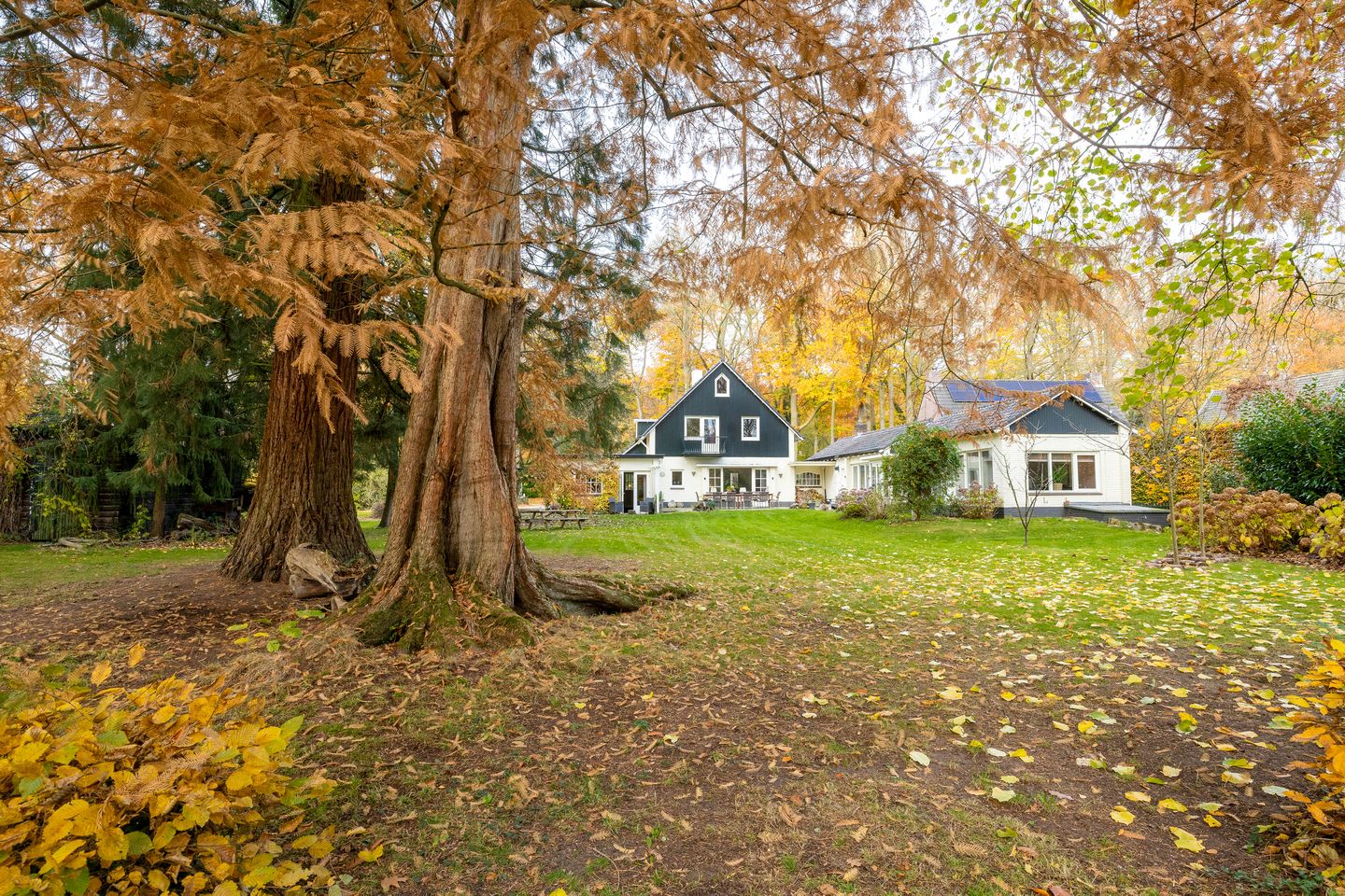 Deze plek is uniek! Diverse terrassen dichtbij en rondom het huis, zitjes op het gazon, de sequoia's, diverse kleurrijke borders. Houtwallen, een wandeling door eigen tuin en een eigen bosje. Het royale perceel is vrij gelegen, met zelfs bospaadjes door eigen tuin.