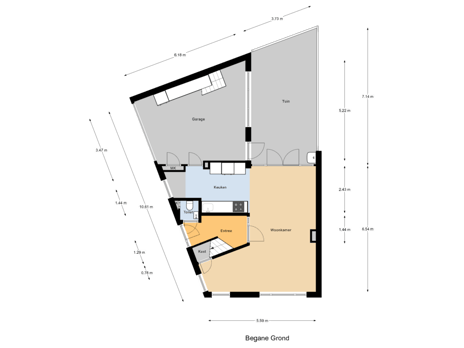 De woning beschikt over een ruime entree die toegang biedt tot de eerste verdieping, het toilet en via een loopdeur naar de woonkamer, in het toilet bevindt zich tevens de meterkast. De woonkamer is royaal van opzet, met voldoende ruimte voor een grote eettafel en een comfortabel zitgedeelte. Dankzij de ramen in alle gevels geniet de ruimte van veel natuurlijk licht. Via openslaande deuren is de zonnige achtertuin bereikbaar, gelegen op het zuidwesten, waar u tot in de late uurtjes van de zon kunt genieten—perfect na een werkdag of een project in de garage. De moderne open keuken, direct bereikbaar vanuit de woonkamer, is van alle gemakken voorzien. De keuken beschikt over een inductiekookplaat, afzuigkap, stoomoven, vaatwasser, koel-/vriescombinatie en een spoelbak. De keuken beschikt over veel bergruimte en is afgewerkt met een kunststof werkblad. Vanuit de keuken is er toegang tot de royale garage.