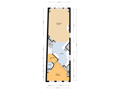 - 25 m² (5.57 metre deep and 4.50 metre wide)