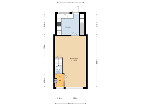 Keuken: ca. 3.64 x 2.82m.