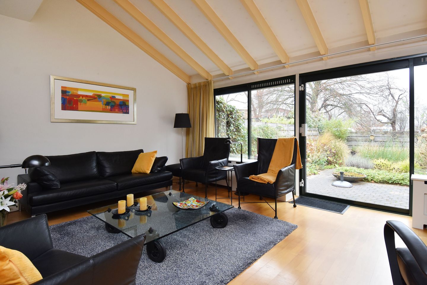 - Lichte royale woonkamer met een zitgedeelte aan tuinzijde en eetgedeelte aan voorzijde;