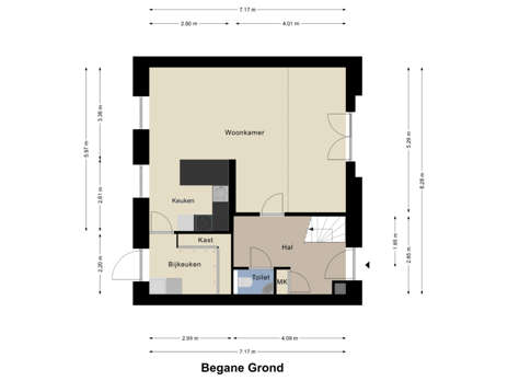 Through the generous entrance hall, you step into the home. The hall provides access to the meter cupboard, a neatly finished toilet room, and the living room. The staircase leads to the first floor.