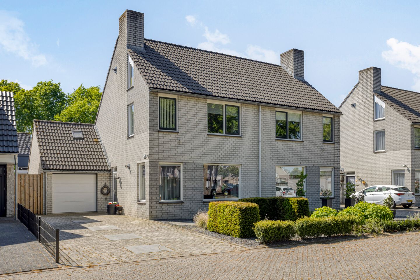 Sfeervolle twee-onder-een-kapwoning met garage, schuur en zonnepanelen in een rustige woonwijk in Grave.