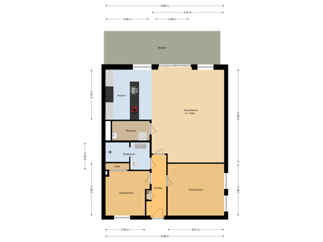 - 21 m² (2.35 metre deep and 8.90 metre wide)