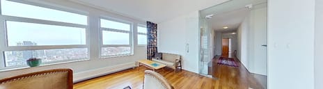Via de entree met intercom en videosysteem komt u in de centrale hal met liften en een trappenhuis. Op de 12e verdieping komt u aan in uw eigen hal met twee voordeuren. Beide voordeuren geven entree tot een hal en gang.