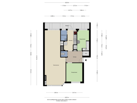 De woning is gemeten op basis van de Branche Brede Meetinstructie (BBMI). Deze meetinstructie is bedoeld om een meer eenduidige manier van meten toe te passen voor het geven van een indicatie van de gebruiksoppervlakte. De Meetinstructie sluit verschillen in meetuitkomsten niet volledig uit, door bijvoorbeeld interpretatieverschillen, afrondingen of beperkingen bij het uitvoeren van de meting. Het vermelde aantal m2 en m3 dient daarom nadrukkelijk als indicatief gelezen te worden.