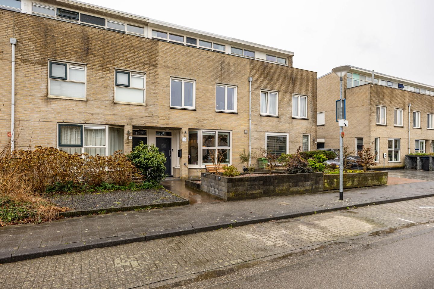 Aan de voorzijde een nette voortuin met terras en overkapping. De zonnige achtertuin, gelegen op het zuiden, is volledig bestraat en voorzien van een terras en twee bergingen.