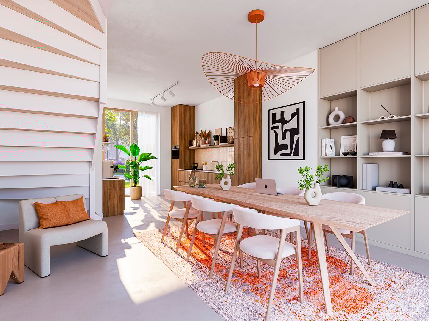 De leefkeuken op de begane grond is de ideale plek voor lange etentjes met het gezin of vrienden. Op de eerste verdieping vind je de lichte, ruime woonkamer waar je in alle rust kunt ontspannen. Dankzij de complete afwerking van de keuken en badkamer voelt het meteen als thuis.