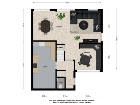 Via de entree bereikt u een nette hal met de automatische groepenkast en een modern uitgevoerde toiletruimte (2025) met hangcloset en fonteintje. Vanuit de hal zijn zowel de woonkamer als de inpandige garage bereikbaar.