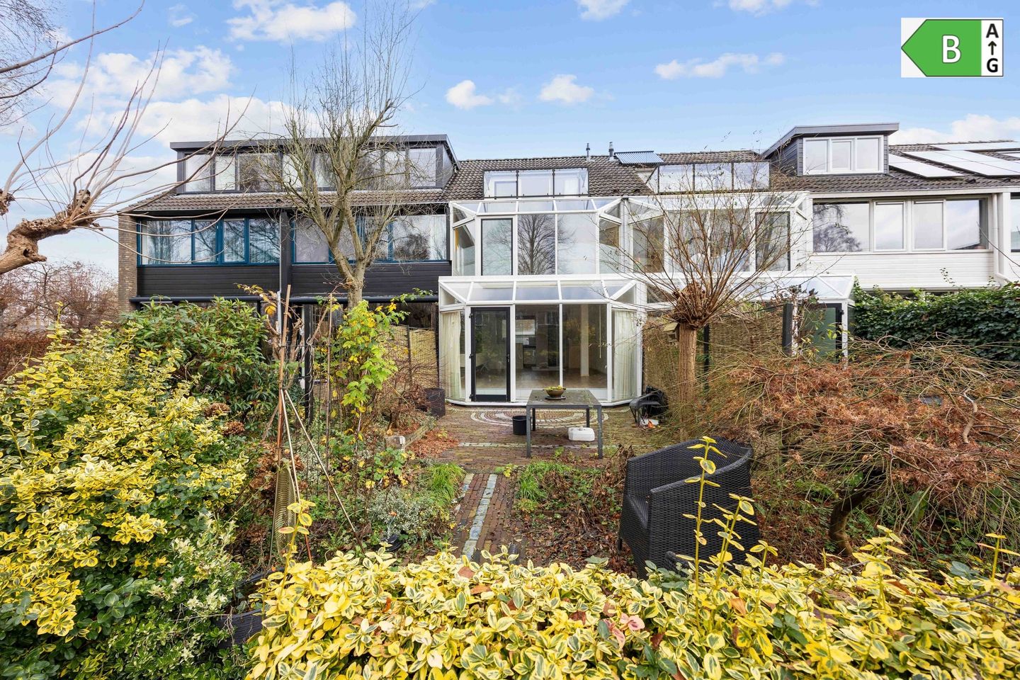 You won't find a second one anywhere else, because after construction, the owner (the first buyer) designed and commissioned a glass rear facade together with the neighbors. In addition, the courtyard garden, part of the Le Roy area for which Lewenborg is known, is accessible from your own backyard. You see here what's so lacking these days: community. The courtyard garden is free for everyone to use and is communally maintained. We could talk about that for hours, but the important thing is that it's lush, natural. You won't feel like you're living in a city here.