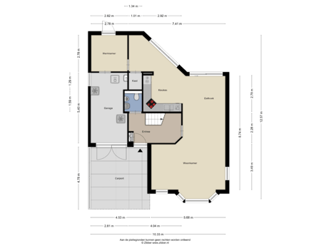 Bij aankomst valt meteen de riante oprit op, met voldoende parkeergelegenheid. De inpandige garage biedt daarnaast extra gemak en bergruimte. Via de entree bereik je de lichte en ruime woonkamer, die dankzij de grote raampartijen een prettige, open sfeer heeft. Aangrenzend vind je de keuken en een praktische werkkamer op de begane grond, ideaal voor thuiswerkers of als hobbyruimte.