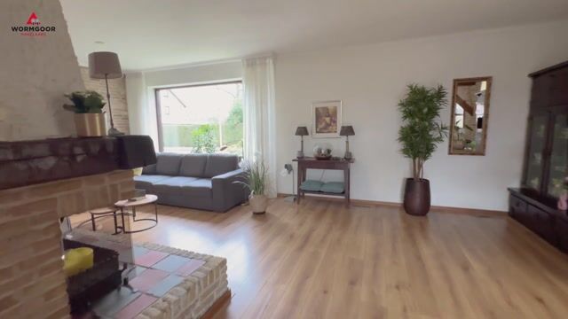 Bij binnenkomst valt direct de karakteristieke entree op, met een open trapopgang en fraaie vide waardoor er een prettige lichtinval ontstaat. De L-vormige woonkamer is ruim en sfeervol, voorzien van een open haard en grote raampartijen, waardoor het hier heerlijk wonen is.