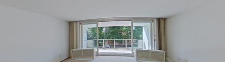 De grote woonkamer met brede schuifdeuren naar het ruime, zonnige terras op het zuiden heeft geen zichtbare achterburen, dus is er veel privacy! Achter het complex ligt het eigen parkeerterrein.