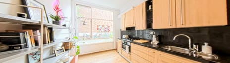 In een rustige autoluwe straat gelegen goed onderhouden benedenwoning met 2 slaapkamers, een fijne achtertuin waarin een trap naar het dakterras.