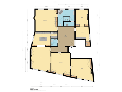Je wordt ontvangen in een zeer ruime hal met toegang tot het toilet met wastafel en inloopdouche. Vanuit de hal kun je een aantal kamers bereiken. Zo bevinden zich de woonkamer, eetkamer en een extra (werk)kamer zich aan de voorzijde. Alle kamers zijn voorzien van inbouwkasten; in twee kamers staan mooie marmeren schouwen.