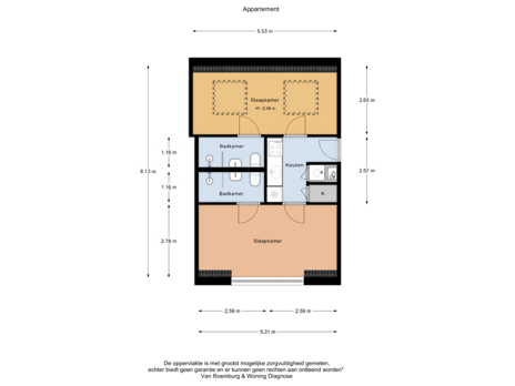 The bedroom is also very bright, generously sized, and remarkably quiet — thanks to its location in a small-scale building with only a ground floor and a first floor. This apartment is situated on the top floor, meaning you have no upstairs neighbours, ensuring extra peace, privacy, and comfort. The bedroom also includes an en-suite bathroom, complete with a walk-in shower, toilet, sink with illuminated mirror, towel heater, and high-quality finishes. The entire apartment is fitted with underfloor heating, providing a pleasant indoor climate throughout the year.
