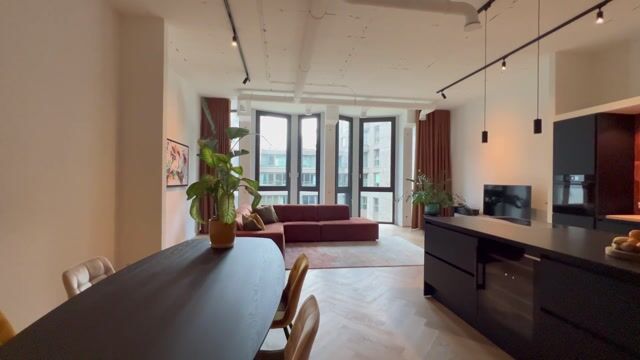 What a delightfully spacious apartment! You enter through a generous hallway with a toilet and storage space. From the hall, you walk into the bright living room, where the large floor-to-ceiling windows create a sea of light. The modern open kitchen is fully equipped with luxurious built-in appliances and features a cozy kitchen island. There is also enough space in the living room to easily set up your own workspace, which is ideal for those working from home. Additionally, there is a spacious bedroom, a continuous set of built-in closets, and a luxurious bathroom with a whirlpool bath, walk-in shower, and double sink. The large windows and high ceilings together create an extra sense of space and light, while the entire complex has been designed with sustainability in mind. The apartment is equipped with an air heating/cooling system and a heat-recovery ventilation system. With an energy label A++, the property also contributes to an environmentally conscious and energy-efficient lifestyle. This home combines luxury, comfort, and an ideal location, offering high-quality living space for now and the future!