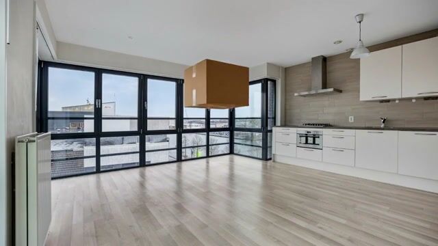 Modern en licht 2 kamer hoekappartement, op de vierde verdieping, met fantastisch uitzicht over de duinen, het Spaarne en de stad Haarlem.