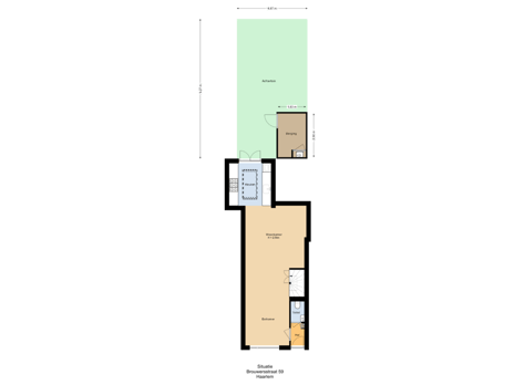 Door to deep garden with cupboard for central heating boiler and back entrance with access to an enclosed square. Sunny and deep backyard. Wooden shed for bicycles and storage.