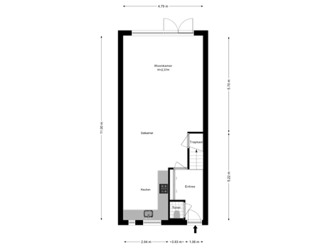 entrance, hallway, separate luxury (floating) toilet with sink, meter cupboard, spacious extended (2010) garden-oriented living room with tiled floor and underfloor heating plus French doors to the backyard, modern luxury open kitchen with various built-in appliances;