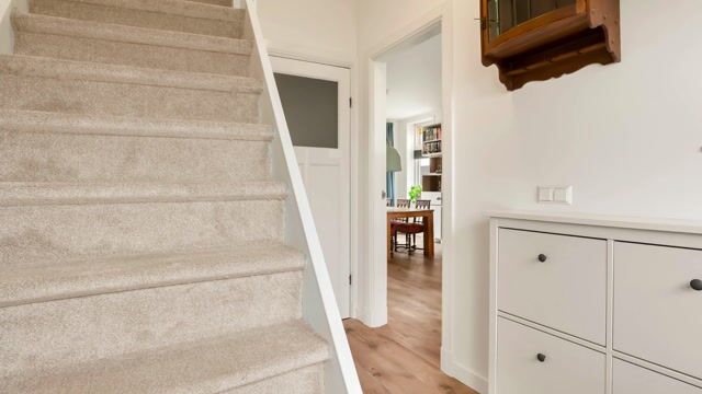 De woonkamer met moderne open keuken is aan de achterzijde uitgebouwd en aan de voorzijde voorzien van een erker. Het originele glas-in-lood, de openslaande deuren, de paneeldeuren en de originele voordeur geven een echte jaren ’30 sfeer. De begane grond is voorzien van een lichte houtlook tegelvloer en de wanden en het plafond zijn afgewerkt met glad stucwerk. De houtkachel in de woonkamer maakt het plaatje compleet.
