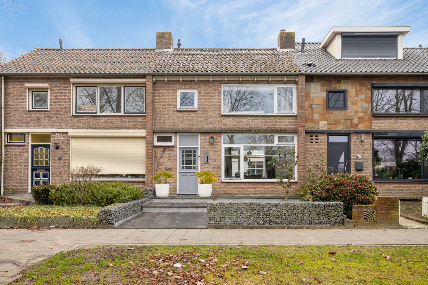 De voor- en achtertuin zijn beide keurig en onderhoudsvriendelijk aangelegd waarbij de achtertuin beschikt over een achterom en een brede (fietsen)berging.