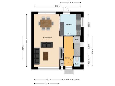 We komen binnen in de hal, waar je de meterkast (twee groepen), een trapkast, de trapopgang naar de verdieping en het toilet terugvindt. Vanuit hier lopen we door de keuken naar de woonkamer. Een nette en lichte ruimte, een zogenaamde "doorzonwoonkamer", voorzien van HR++ beglazing met rolluiken. De open keuken aan de achterzijde is gedateerd, maar biedt een praktische indeling en toegang tot de tuin. De muur tussen keuken en woonkamer is in het verleden al doorgebroken en hierdoor kun je zonder moeite een moderne leefkeuken realiseren met een keukeneiland. Liever meer ruimte, dan is uitbreiden met een aanbouw een heel goed idee bij deze woning! De tuin is groot genoeg en een aanbouw zou zeker niet misstaan achter de woning.