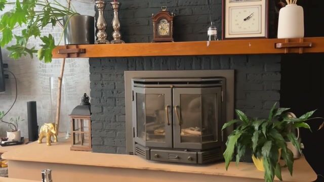 De woonkamer ligt aan de straatzijde en heeft een prettige sfeer, met een houtkachel als centraal punt en een groot raam dat zorgt voor veel lichtinval.