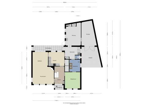 Via de keuken is de bijkeuken bereikbaar. Hier is ook de aansluiting voor wasmachine en droger. Tevens gaat u via de bijkeuken naar de inpandig bereikbare berging, separate toilet en badkamer. Vanuit deze badkamer is ook een toegang tot de slaapkamer beneden.