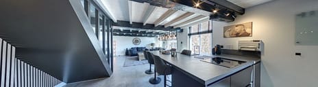 Het appartement is voorzien van een nette luxe keuken (2022) met kookeiland en inbouwapparatuur en een woonkamer met prachtige grote balken en schitterend uitzicht over de gezellige markt. De oppervlakte van de keuken en woonkamer zijn samen circa 45 m².