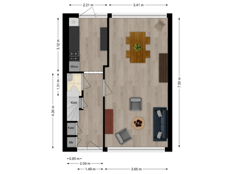 Maatvoering: Circa 7.50 x 3.65/3.41m