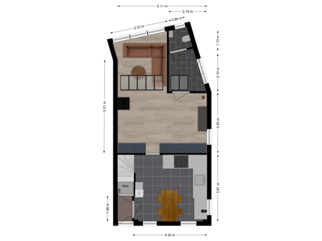 Maatvoering: Circa 4.80 x 3.31/2.50m