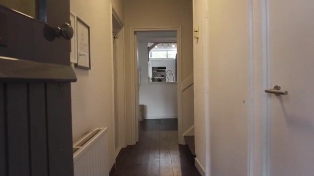 U parkeert uw auto aan de openbare weg en loopt naar de voortuin. De voortuin is sfeervol en groen ingericht, met een grote volwassen boom die voor natuurlijke schaduw en privacy zorgt. Een pad leidt naar de entree van de woning. U komt binnen in de hal waar u het toilet, de trapkast met meterkast, een garderobe en de trapopgang naar de verdieping vindt. Vanuit de hal heeft u toegang tot de eet-/woonkamer.