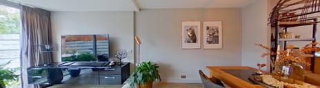 As soon as you step inside, you’ll notice the care and attention given to the home. The hallway provides convenient access to the attached storage room. You will also find the modern toilet (2023), the meter cupboard and the staircase here. From the hallway, you enter the spacious extended living room. Thanks to the large windows and sliding doors, this is a wonderfully bright space. The living room overlooks the well-kept west-facing garden with veranda.