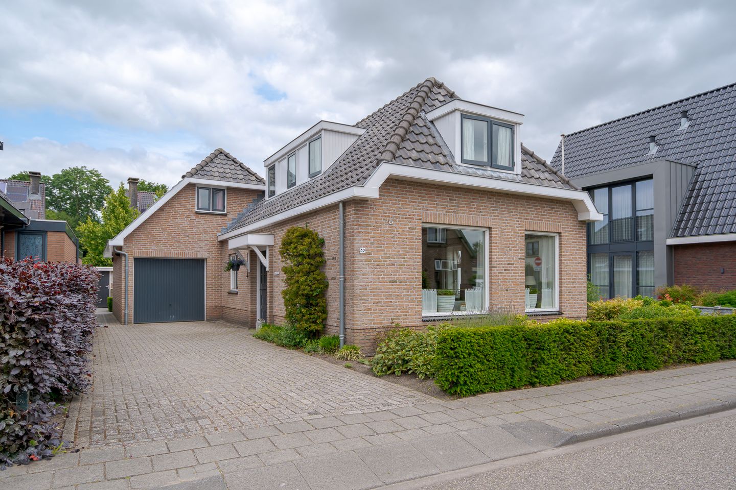 Aansluitend aan de woning bevindt zich een aangebouwde garage met kanteldeur. Deze garage biedt volop ruimte voor het stallen van een auto, fietsen of het opbergen van tuin- en klusmaterialen.