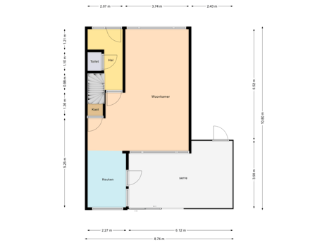 Bij binnenkomst stapt u de ruime hal in, waar u direct toegang heeft tot het toilet, de trap naar de eerste verdieping en de doorzonwoonkamer. Deze woonkamer loopt vloeiend over in de aangebouwde open keuken, voorzien van diverse inbouwapparatuur. Vanuit de keuken bereikt u de riante, aangebouwde veranda. Dankzij de grote glazendeuren geniet u hier van veel natuurlijk licht en een mooi zicht op de ruime achtertuin.
