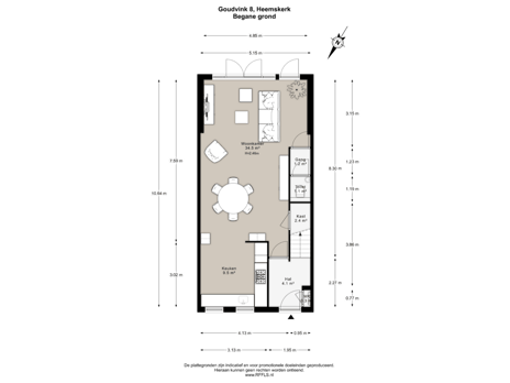 Via de voortuin bereikt u de entree met meterkast, trapopgang en toegang tot de woonkamer.