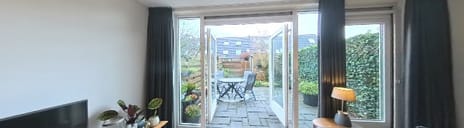 - Woonkamer voorzien van openslaande deuren (kunststof);