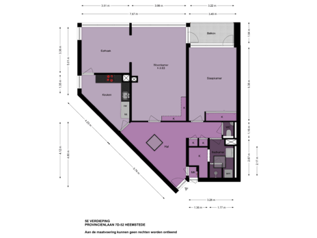 5e etage: riant entree met daklicht, woonkamer met toegang tot balkon, eetkamer en deur naar keuken, slaapkamer met deur naar het balkon, badkamer v.v. daklicht, douche, wastafelmeubel en aansluiting voor zowel wasmachine als droger en schuifdeur naar inpandige berging, separaat toilet met fontein,