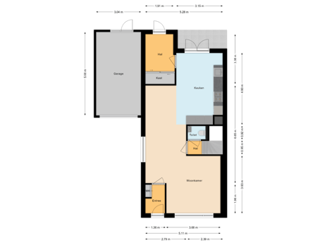 Bij binnenkomst in de entree/hal treft u de meterkast en de toegang tot de woonkamer. De woonkamer aan de voorzijde van de woning is licht en sfeervol dankzij de grote raampartijen en biedt de mogelijkheid een hout- of pelletkachel te plaatsen. Via de woonkamer loopt u naar de achterzijde, waar de eetkamer is gesitueerd. Hier is voldoende ruimte voor een grote zespersoons tafel en achter de eettafel is zelfs een speelse kinderhoek gerealiseerd. De goed onderhouden keuken is voorzien van diverse inbouwapparatuur en deels gesitueerd in de uitbouw van de woning. Hier vindt u een gezellige hoge tafel met barkrukken, direct aangrenzend aan de bijkeuken/achteringang met een praktische vaste kastenwand.