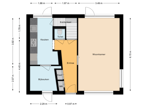 U betreedt de woning via de entree, waar u een vaste kast, de meterkast en het toilet aantreft. De lichte doorzonwoonkamer is voorzien van een nette parketvloer en biedt een heerlijk vrij uitzicht de woonstraat in. Dankzij de royale raampartijen is het hier de hele dag aangenaam licht. In deze ruimte is het bovendien mogelijk om een pelletkachel te plaatsen, wat zorgt voor extra sfeer en comfortabele warmte tijdens de koudere maanden.