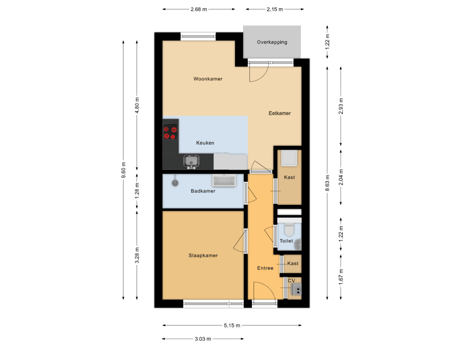 - 3 m² (1.22 metre deep and 2.15 metre wide)