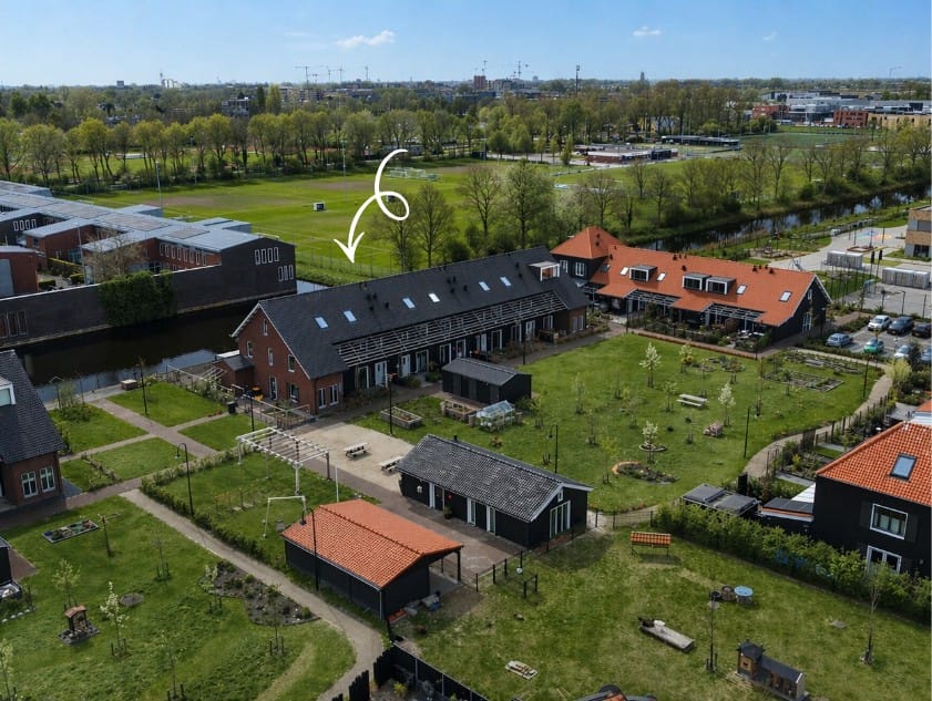 Mandelig terrein: de woning maakt onderdeel uit van een uniek en gezamenlijk mandelig terrein binnen de wijk Hugo’s Tuin. Dit terrein is ingericht als een gedeelde woonomgeving waar bewoners samen gebruikmaken van diverse voorzieningen. Zo is er een gezamenlijke buurtschuur aanwezig die gebruikt kan worden voor buurtactiviteiten of privébijeenkomsten. Daarnaast beschikt het terrein over groene zones met onder andere moestuinen, een dierenweide en gezamenlijke beplanting. Het mandelige karakter wordt beheerd door een actieve Vereniging van Eigenaren, waardoor het terrein netjes wordt onderhouden en het gemeenschappelijke karakter behouden blijft. De maandelijkse servicekosten voor de VvE bedragen € 50,- per maand.