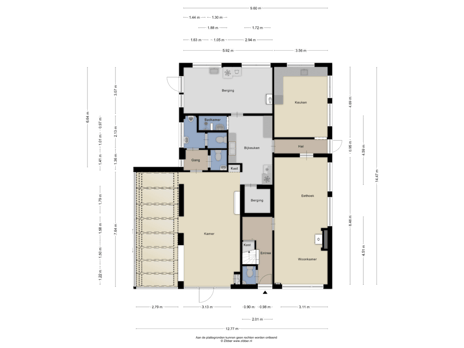 • Grote bijkeuken (circa 18 m2) met wasbak en HR CV combiketel (Vaillant).