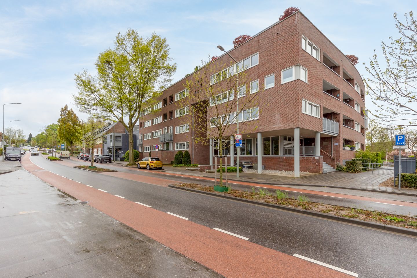Portaal met toegang tot het appartement. Ruime hal van waaruit nagenoeg alle vertrekken te bereiken zijn. De ruime woonkamer met half open keuken liggen aan de voorzijde. Hier is verder nog een klein (sta) balkon gesitueerd. De U-vormige keuken beschikt over veel kastruimte en de volgende inbouwapparatuur: keramische kookplaat, afzuigkap, combi magnetron, koel-/vriescombinatie en vaatwasser. Vanuit de centrale hal met videofooninstallatie zijn verder de meterkast, de cv-/wasruimte en de toiletruimte met duoblok en fontein, te bereiken. De badkamer is enkel bereikbaar via de grote slaapkamer douche, ligbad, wandcloset en wastafelmeubel. Aan de achterzijde liggen de twee slaapkamers (resp. ca. 17,5 en 8,5 m² groot). Vanuit grote slaapkamer is er toegang tot het ruime op het Zuidwesten gelegen overdekte balkon (ca. 17 m²).