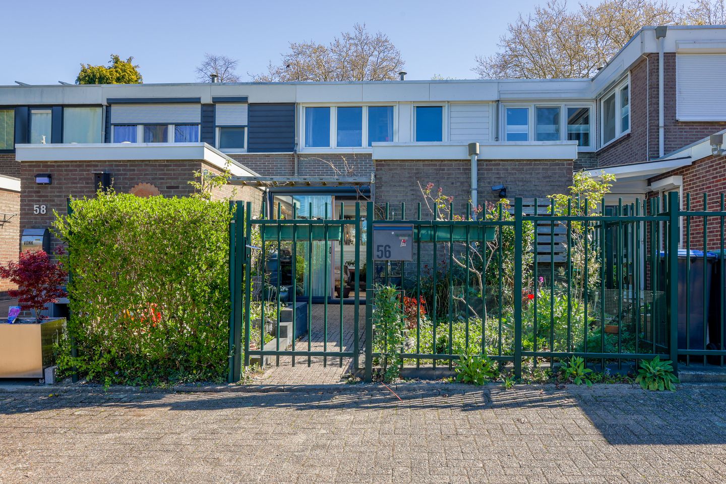 Voortuin met serre en entree. Tevens is aan de voorzijde nog een ruime berging/bijkeuken (2.37 x 3.42m) waar zich de witgoedaansluitingen bevinden. Deze berging is geïsoleerd, beschikt over elektra, (warm)water en heeft een aanrechtblad. Entree/hal met trap, toilet met wandcloset en fonteintje en meterkast. Deur naar woonkamer (5.20 x 4.00/2.86m) met laminaat en vloerverwarming en schuifpui naar mooie patio-tuin. Halfopen keuken (2.84 x 2.50m) v.v. een modern keukenblok in hoekopstelling met diverse opbergkasten, 5 pits gaskookstel met oven, afzuigkap, vaatwasser en koel-vriescombinatie. Separaat van woning ligt direct aan de overzijde van de woning de ruime garage (6,32 x 2.81m).
