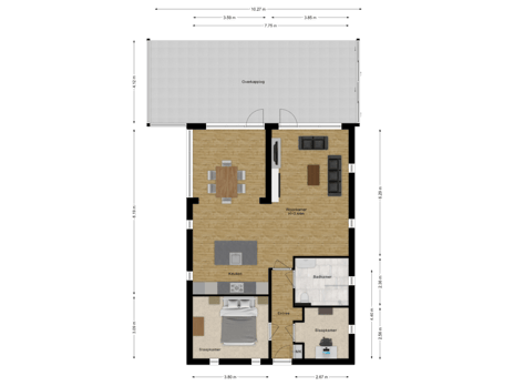 - De ruime woonkamer heeft veel lichtinval dankzij de vele raampartijen. De woonkamer staat tevens in open verbinding met het eetgedeelte en de leefkeuken.